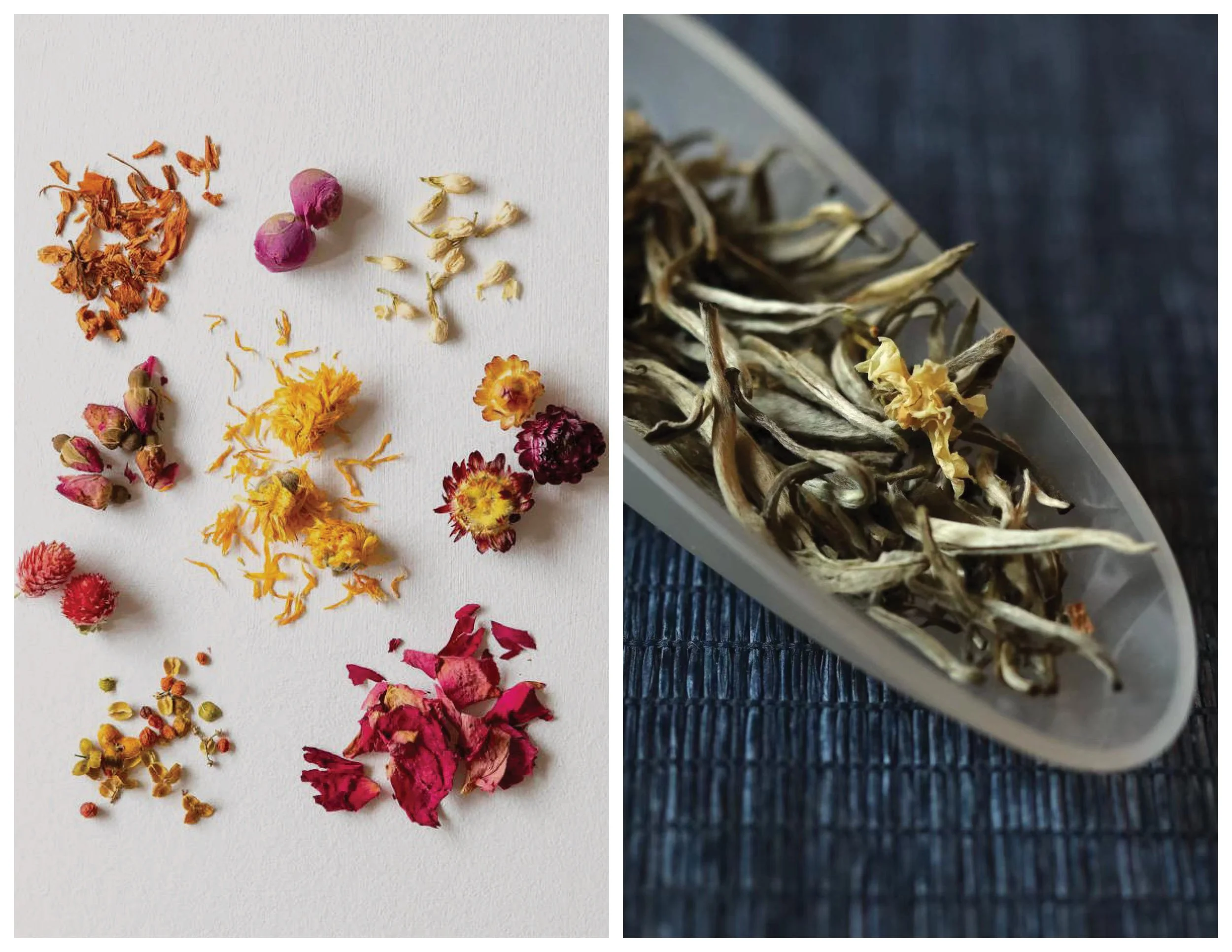 Floral tea, by contrast, is not made from flowers but made with them. Here, tea and blossom meet in quiet conversation. Through a slow and deliberate scenting process, fresh flowers are layered over tea leaves and then removed, again and again, until only their essence remains. What’s left behind is not the petal, but its memory, infused into the character of the tea itself.